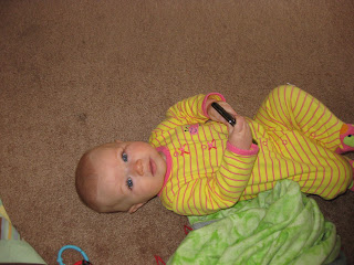 This month has brought us another tooth giving us a 2 tooth grin which is seriously adorbale. She also has a new obsession with standing, even tough she's not the most stable. She also mastered getting anywhere she wants to be. She has two methods, rolling and the head down push which I'm certain will give her a rug burn on her forehead before too long.